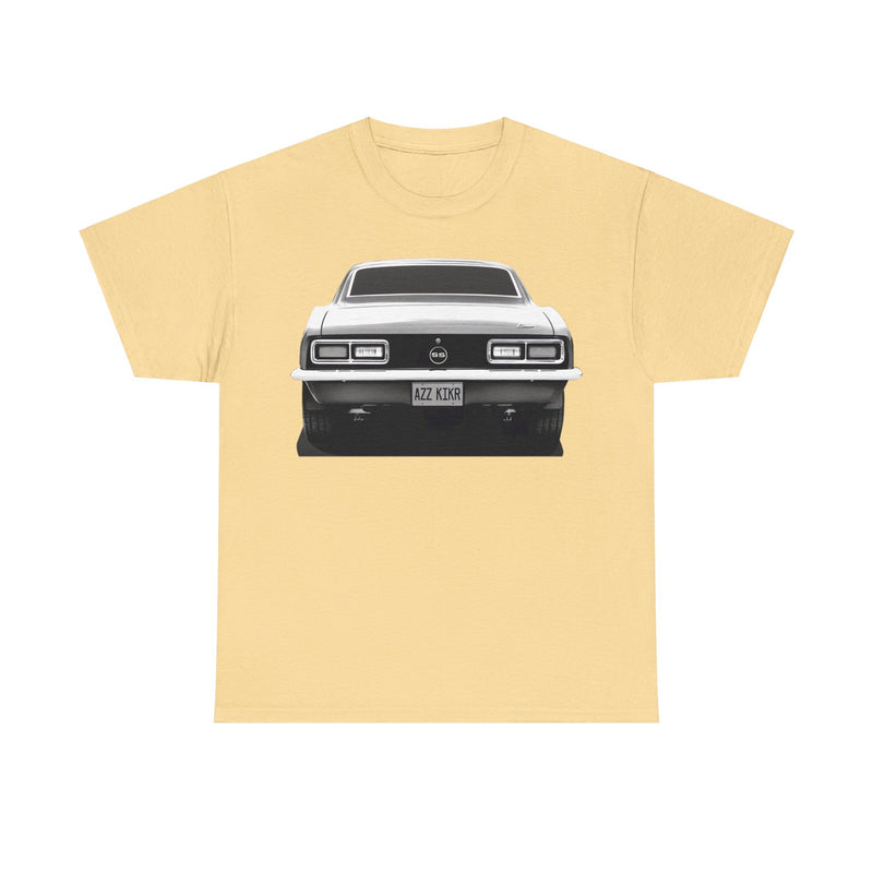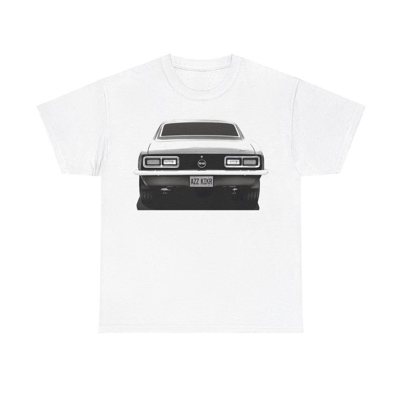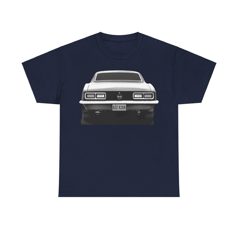 The Camaro SS's popularity soared in 1968, with its perfect blend of raw power and sleek design. The playful "Azz Kikr" moniker on our shirt pays homage to the car's reputation for leaving competitors in its dust. While stricter emissions regulations and the oil crisis of the 1970s temporarily slowed the muscle car movement, the Camaro's appeal has remained timeless, allowing it to adapt and thrive through the decades.