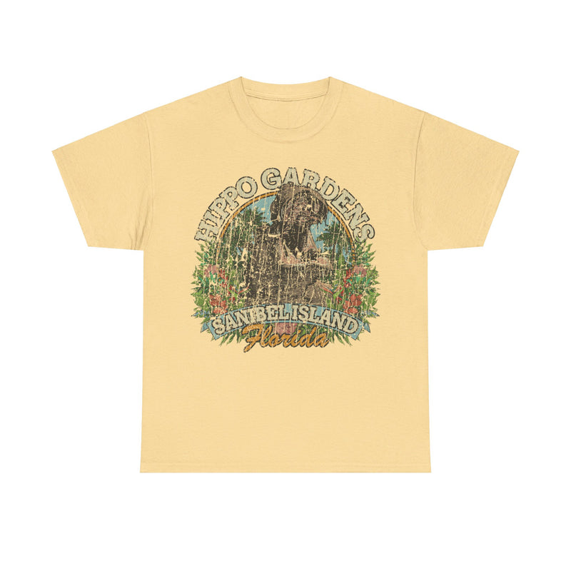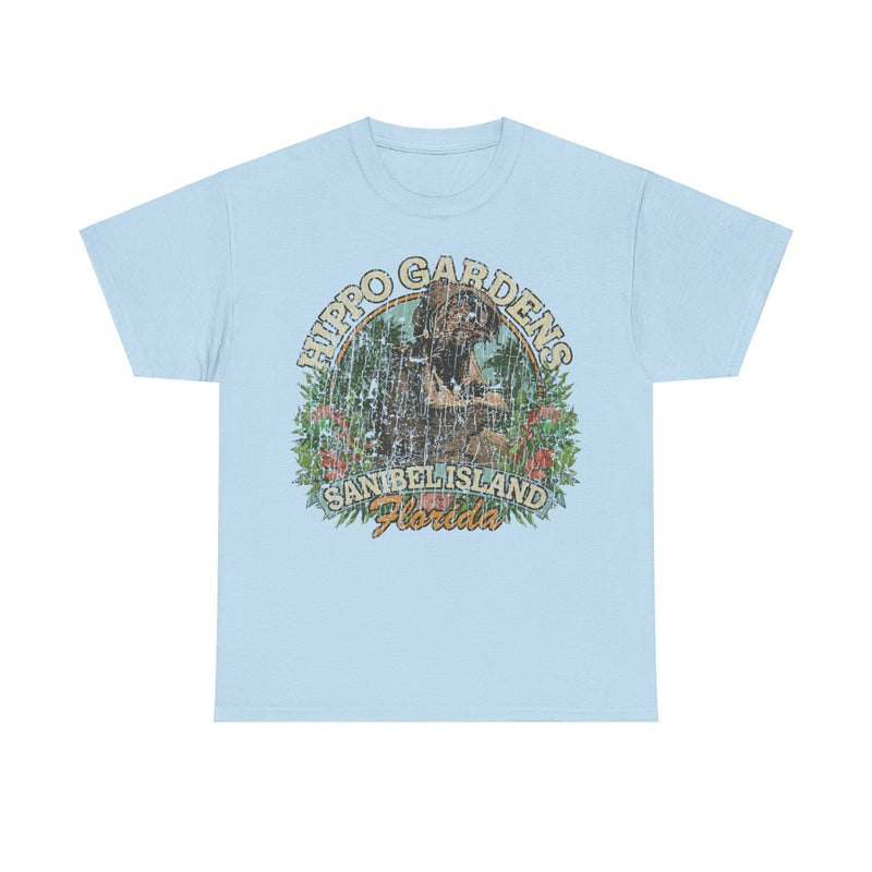 The Sanibel Island Hippo Gardens Florida Park T-shirt is a tribute to the beloved roadside attraction that once delighted visitors in the Sunshine State. Located on Sanibel Island, the Hippo Gardens featured a unique blend of exotic animals, lush vegetation, and whimsical statues. Families flocked to the park to marvel at the hippos, alligators, and monkeys, while children explored the playground and enjoyed the tropical ambiance. However, as tourism patterns shifted and environmental concerns grew, the Hippo Gardens faced increasing challenges. The park eventually closed its doors in the late 1980s, leaving behind fond memories for those who had experienced its quirky charm. This t-shirt serves as a nostalgic reminder of the Hippo Gardens' heyday, a symbol of simpler times and a bygone era of Florida tourism.
