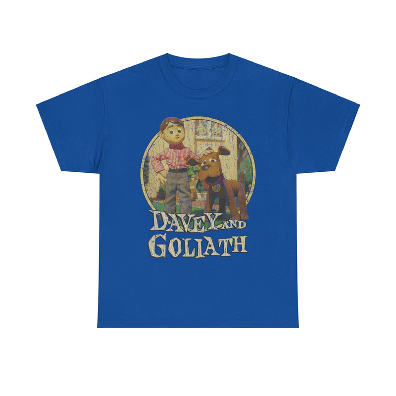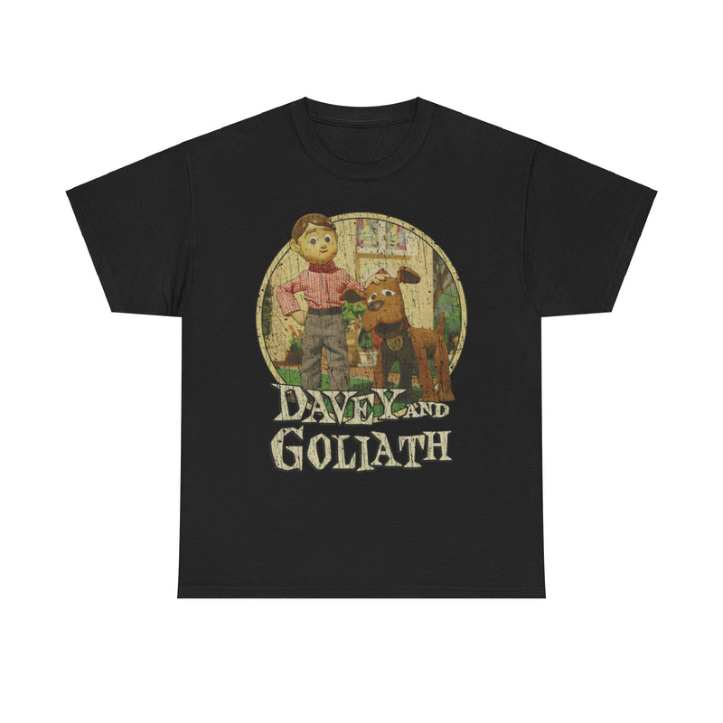 Step back in time to the golden age of stop-motion animation with this nostalgic tee celebrating the beloved series "Davey and Goliath." Premiering in 1961, this groundbreaking show captured the hearts of viewers young and old with its wholesome stories and valuable life lessons.