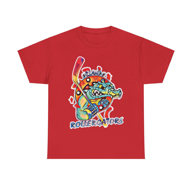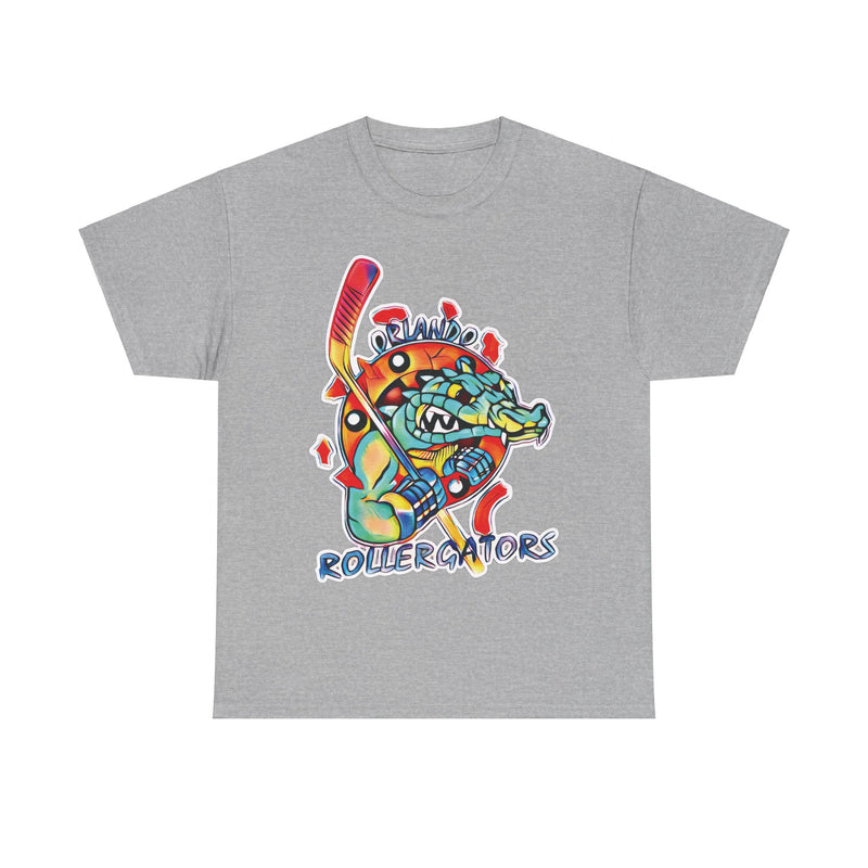 Celebrate a unique chapter in Florida sports history with our Orlando RollerGators T-shirt. This classic tee features the team's distinctive logo on the front, rendered with a distressed, cracked finish that gives it an authentic vintage look and feel, perfectly capturing the spirit of this exciting roller hockey franchise.