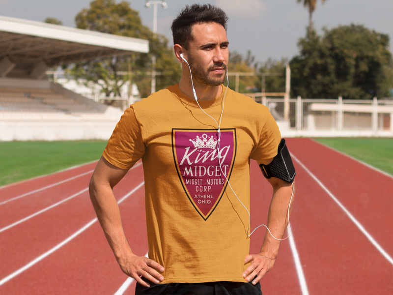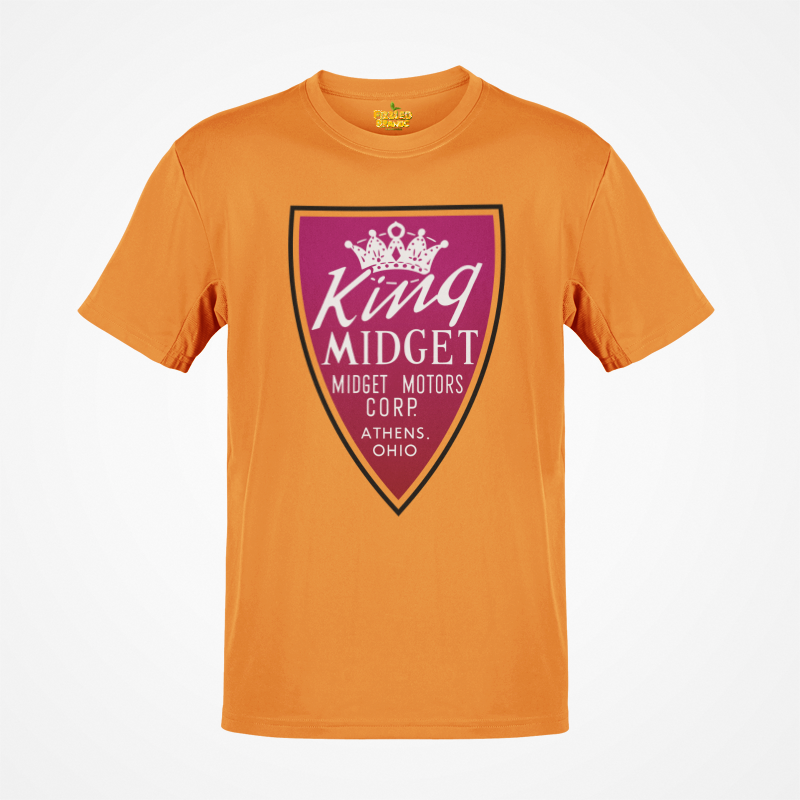 The distressed, cracked logo gives this shirt an authentic vintage feel, celebrating a brand that captured the hearts of economical drivers across America. Though King Midget Motors enjoyed initial success as an affordable alternative during post-war years, the small company ultimately couldn't compete with changing safety regulations and larger manufacturers, ceasing production in 1970.