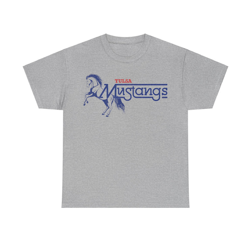 Celebrate the spirit of Oklahoma football with this Tulsa Mustangs Oklahoma Football Team T-shirt. Featuring a vintage-inspired, distressed logo on the front, this shirt pays homage to the rich gridiron tradition of the Sooner State.