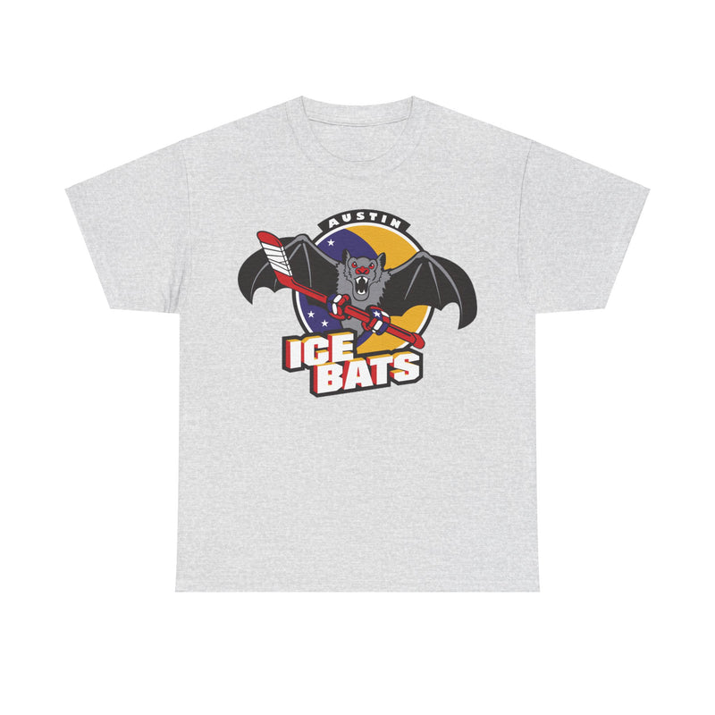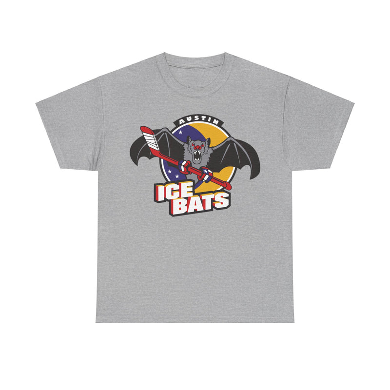 Step onto the ice and celebrate the cool history of Texas hockey with our Austin Ice Bats Hockey Team T-shirt. This classic unisex tee, made from 5.3 oz, 100% preshrunk heavy cotton Gildan 5000 fabric, proudly features the iconic Austin Ice Bats logo on the front, complete with a distressed and cracked appearance that pays tribute to the team's chilling legacy and the unique spirit of hockey in the Lone Star State.