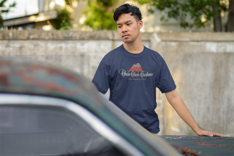 Our Choo Choo Customs Store 1975 Distressed Print T-shirt features a vintage-style design with a cracked, distressed look that captures the rugged spirit and timeless cool of this legendary auto shop. Printed on a high-quality Gildan 5000 Heavy Cotton™ T-shirt, this unisex tee provides a comfortable, classic fit. The shirt is made from 5.3 oz, 100% preshrunk cotton and boasts double needle hems, taped neck and shoulders, and a quarter-turned construction to minimize center creasing. The tear away label ensures comfort and ease of rebranding.