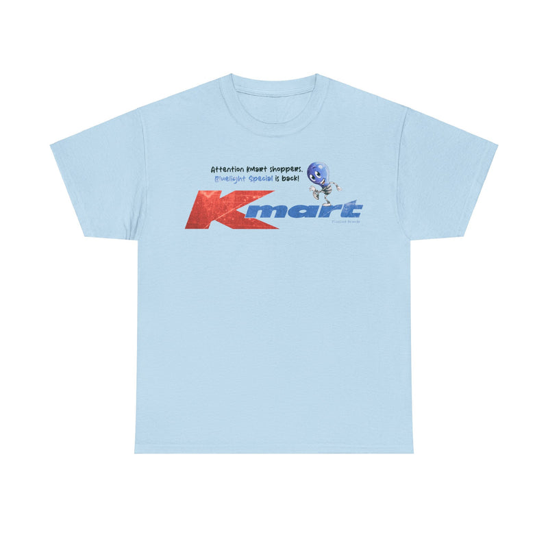 Introducing the Kmart Tribute Short Sleeve T-Shirt – Embrace Nostalgia and Timeless Comfort with the Iconic "Attention Kmart Shoppers Blue Light Special" Logo!