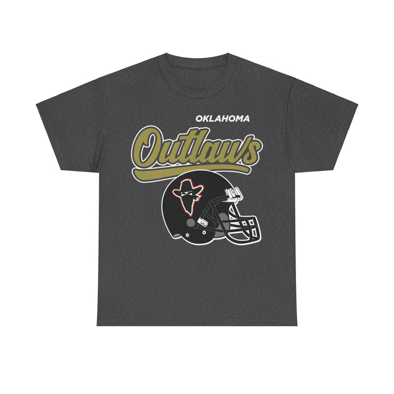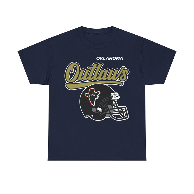 Celebrate a unique chapter in Oklahoma football history with our Oklahoma Outlaws T-shirt. This classic tee features the team's distinctive logo on the front, rendered with a distressed, cracked finish that gives it an authentic vintage look and feel, perfectly capturing the spirit of this short-lived but memorable franchise.