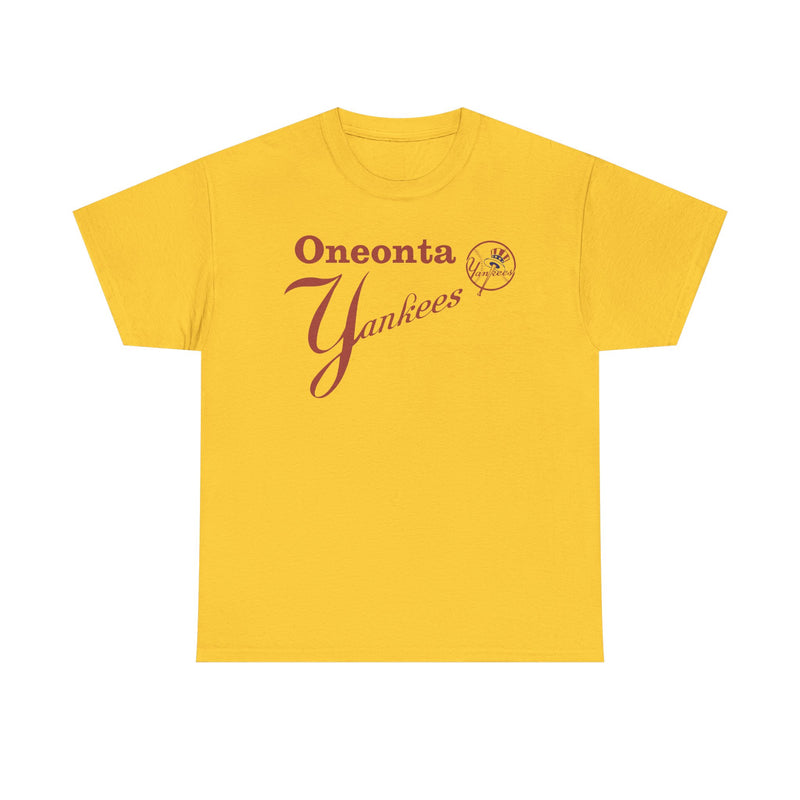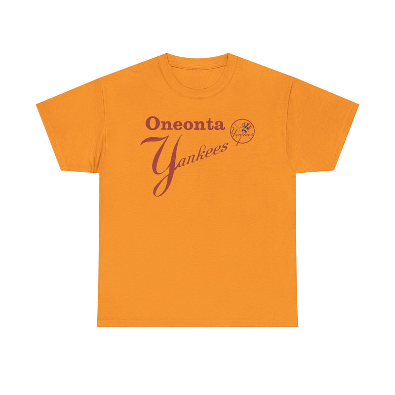 Channel your inner baseball fan with this nostalgic Oneonta Yankees New York-Penn League t-shirt. Featuring the iconic team logo with a perfectly distressed, cracked, vintage feel that captures the golden era of this beloved franchise.