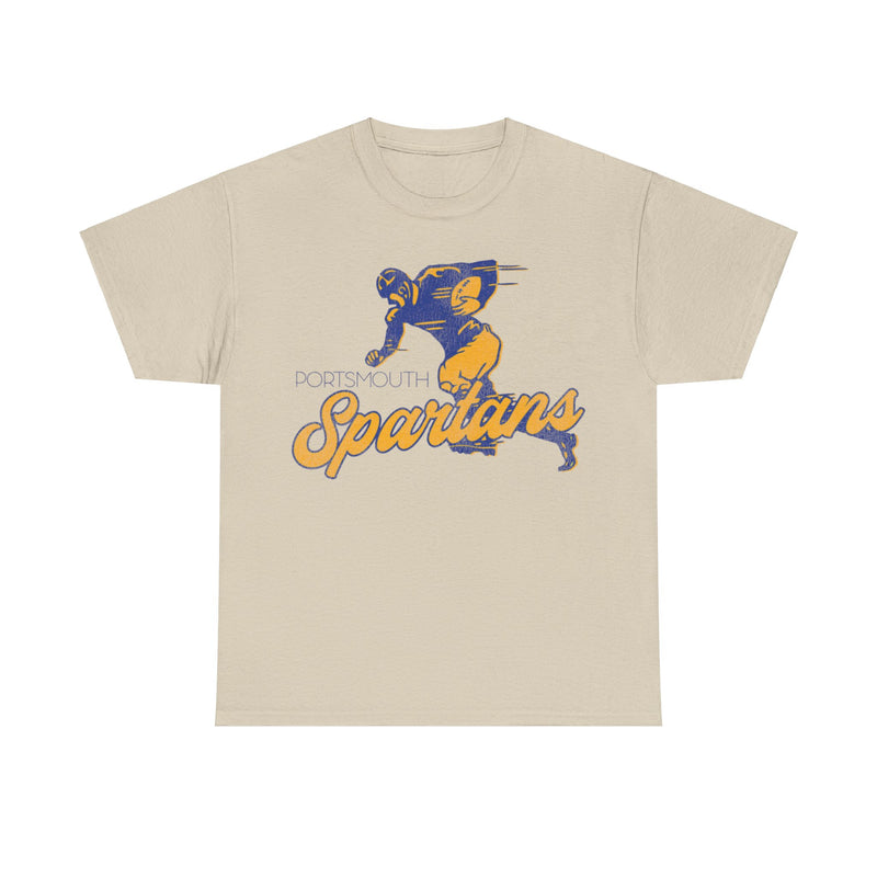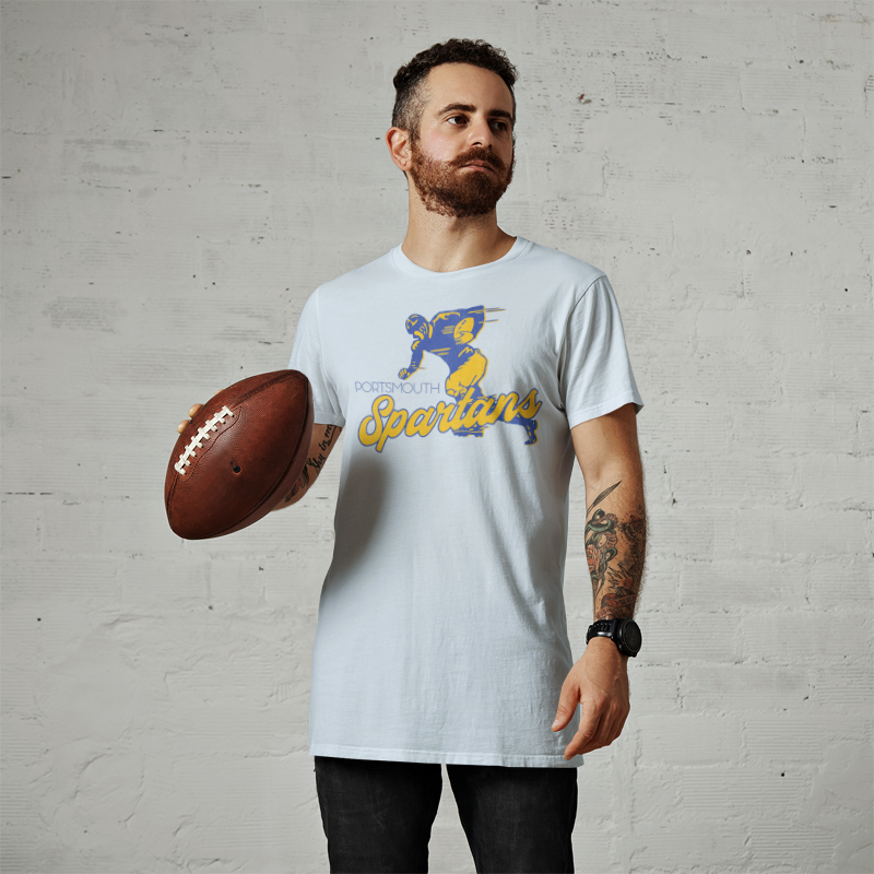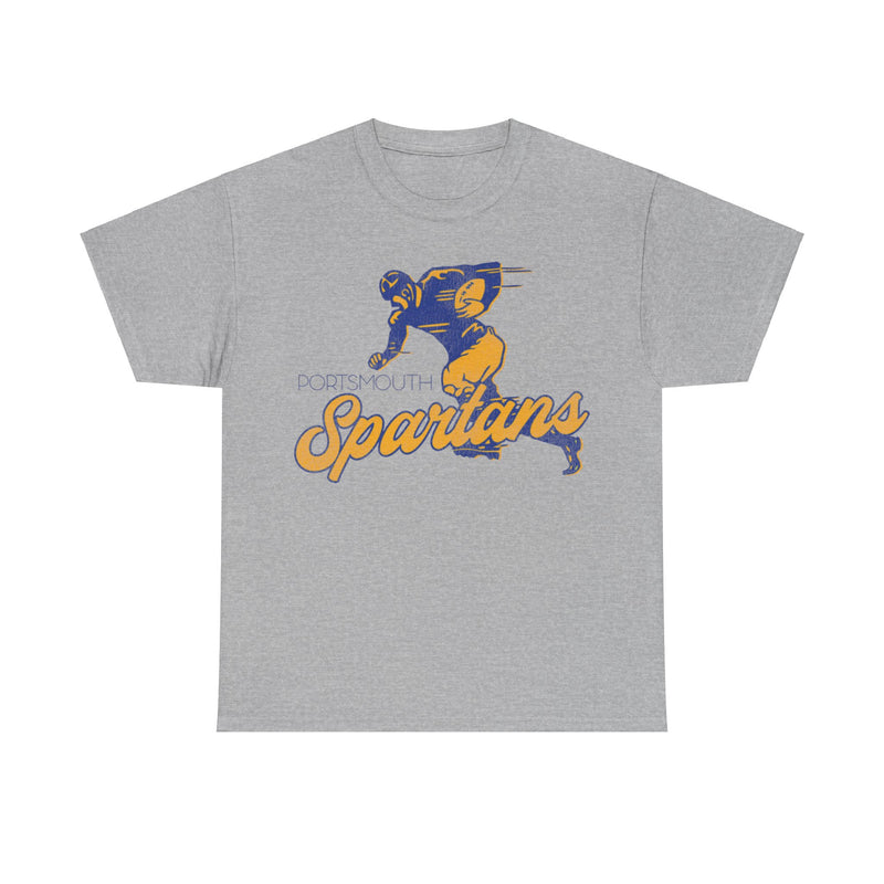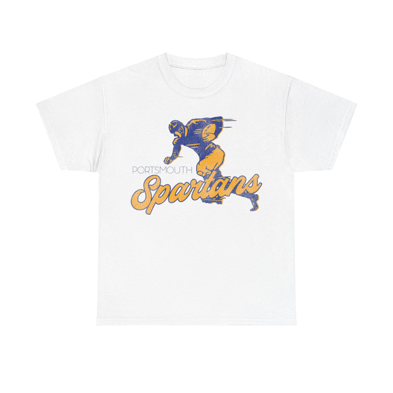 For fans of obscure and fascinating sports history, this retro Portsmouth Spartans t-shirt is a nostalgic piece of football apparel you won't want to miss. It features the classic red, black and blue logo from the short but notable run of the Spartans professional team.