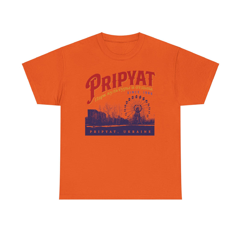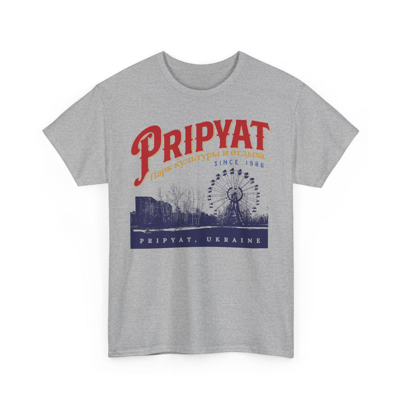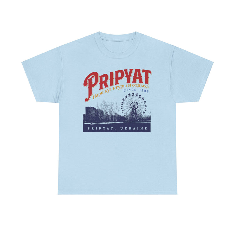 Explore the haunting history of Pripyat with our vintage-style amusement park t-shirt featuring a distressed design that captures the abandoned Ukrainian landmark.