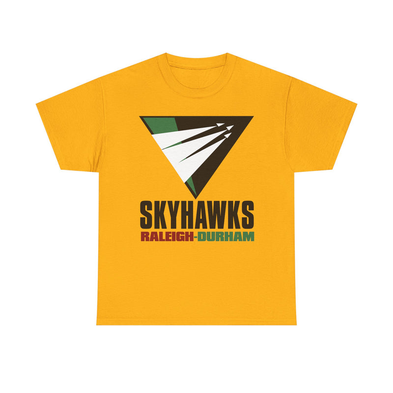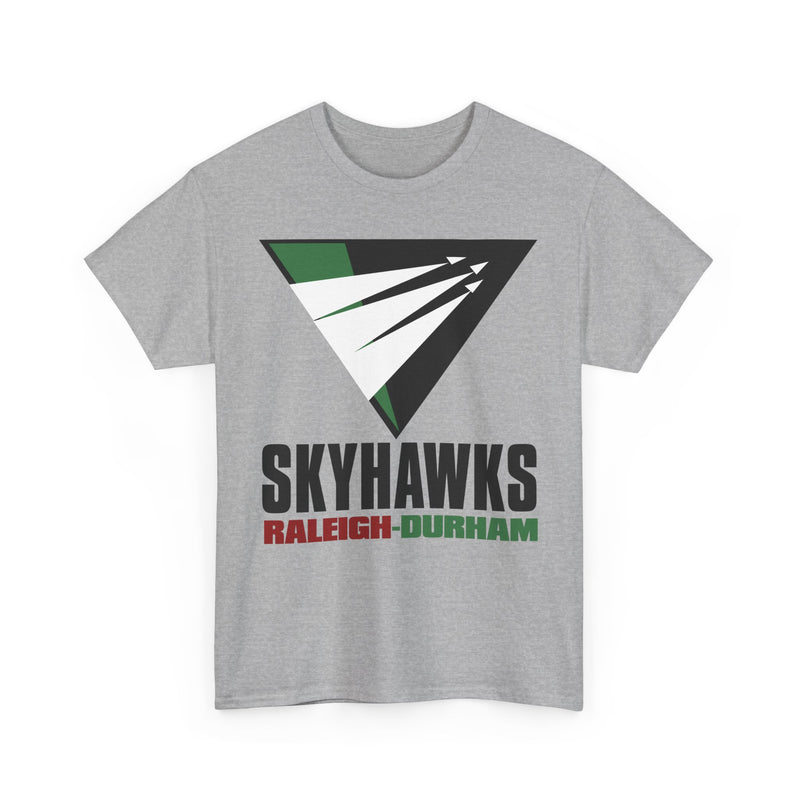 Step back in time with our exclusive Raleigh-Durham Skyhawks North Carolina Football T-shirt, celebrating the brief but memorable existence of one of North Carolina's most intriguing football ventures.