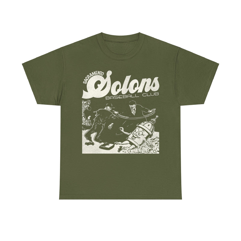 Celebrate a classic piece of Sacramento baseball history with this vintage Solons t-shirt featuring their iconic white logo! The Solons were a beloved minor league franchise that played in California's capital city for over 60 years.