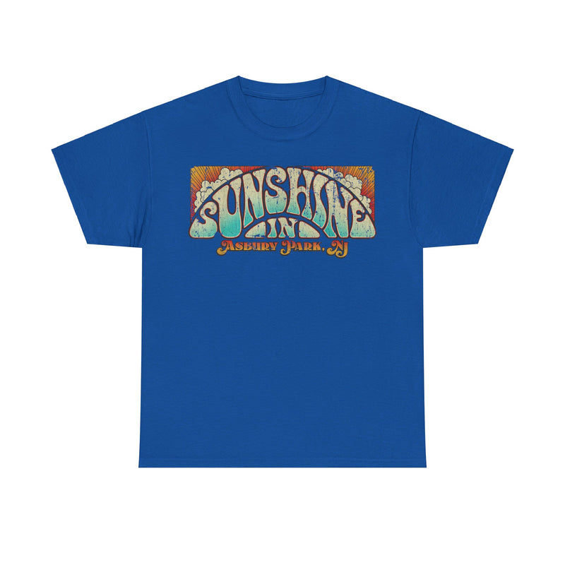 The Sunshine In Asbury Park 1970 New Jersey T-shirt is a tribute to the vibrant music scene that flourished in the seaside town during the early 1970s. Asbury Park became a haven for musicians and music lovers alike, drawn by its eclectic mix of venues, from intimate clubs to sprawling concert halls. The town's boardwalk, with its iconic Casino and Convention Hall, hosted legendary performances by Bruce Springsteen, Southside Johnny and the Asbury Jukes, and other rising stars. The "Sunshine In Asbury Park" T-shirt captures the essence of this era, a time when music filled the air and the boardwalk was alive with energy.